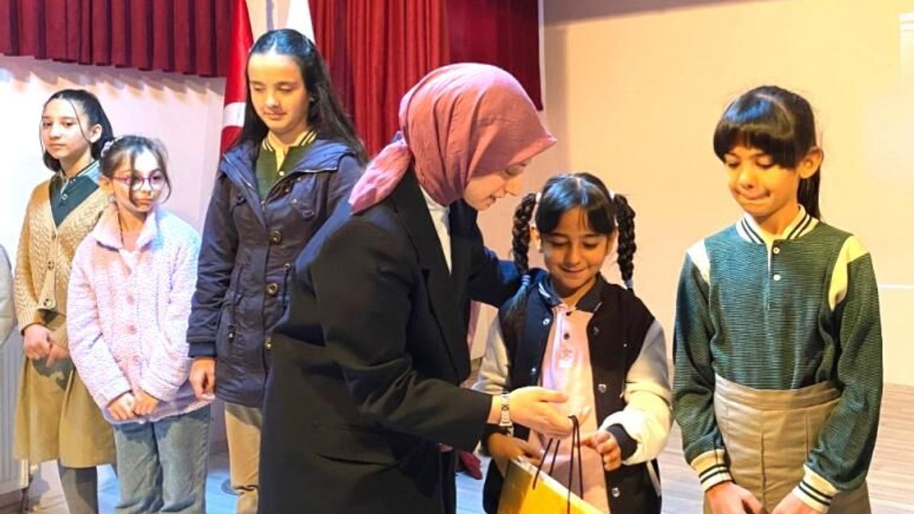 Kaymakam Esra Demirtaş en çok kitap okuyan öğrencilere hediyeler verdi ve öğrencileri tebrik etti.