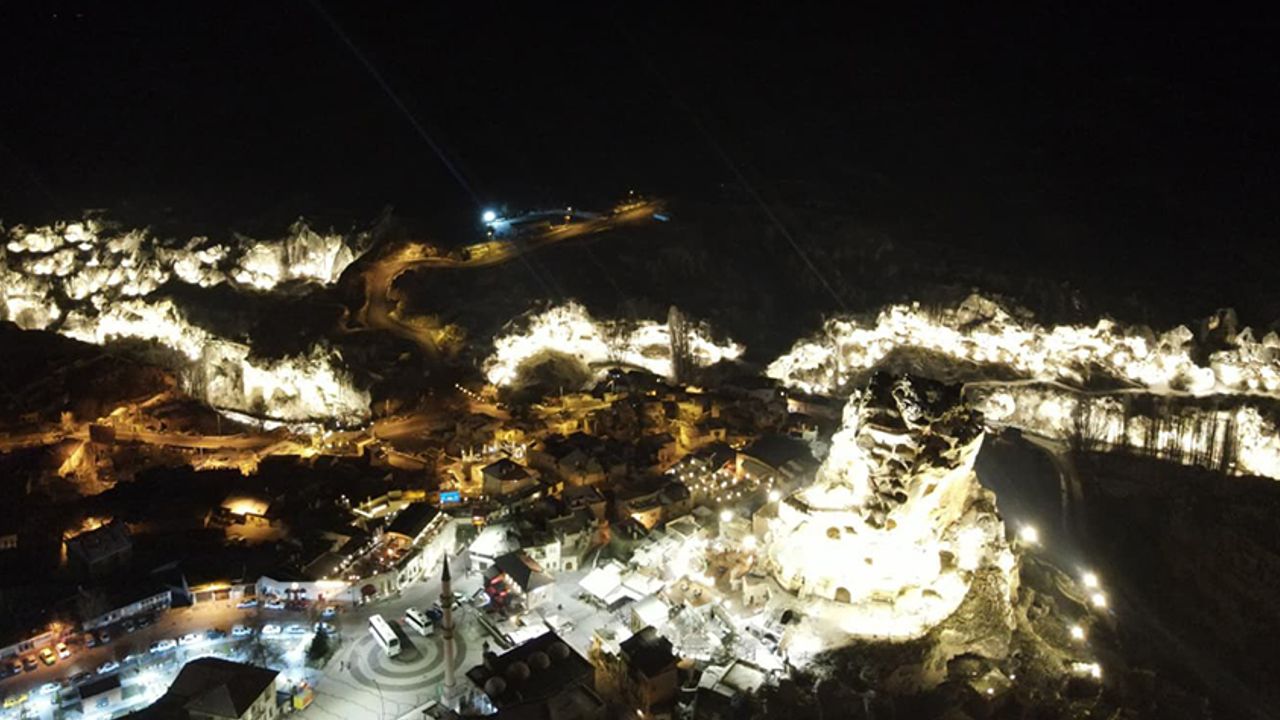 Çevre dostu aydınlatma projesi kapsamında ışıklandırılan Balkan (Balkanderesi) ve Kolastra Vadileri ile Ortahisar Kalesi, Kapadokya’da gece turizminin en önemli rotalarından biri haline geldi.