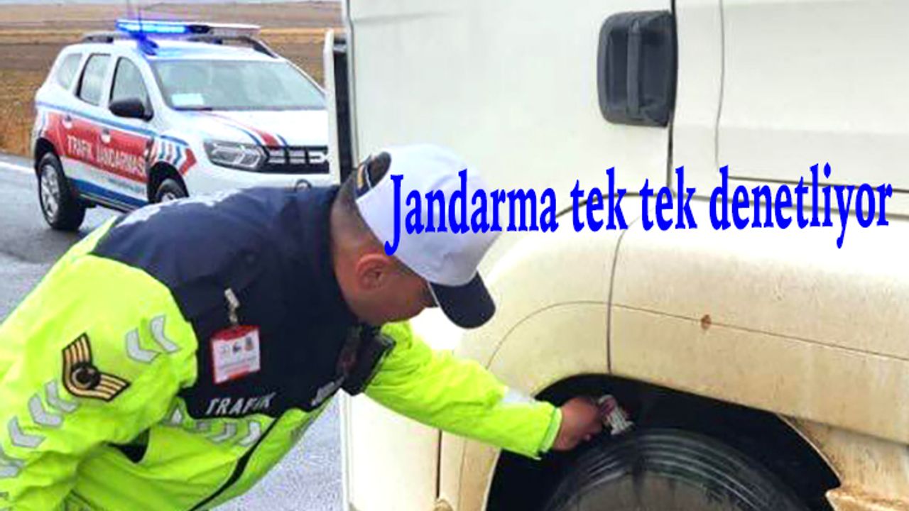 Nevşehir’de jandarma ekipleri kış lastiği uygulaması kapsamında araçları tek tek denetliyor.