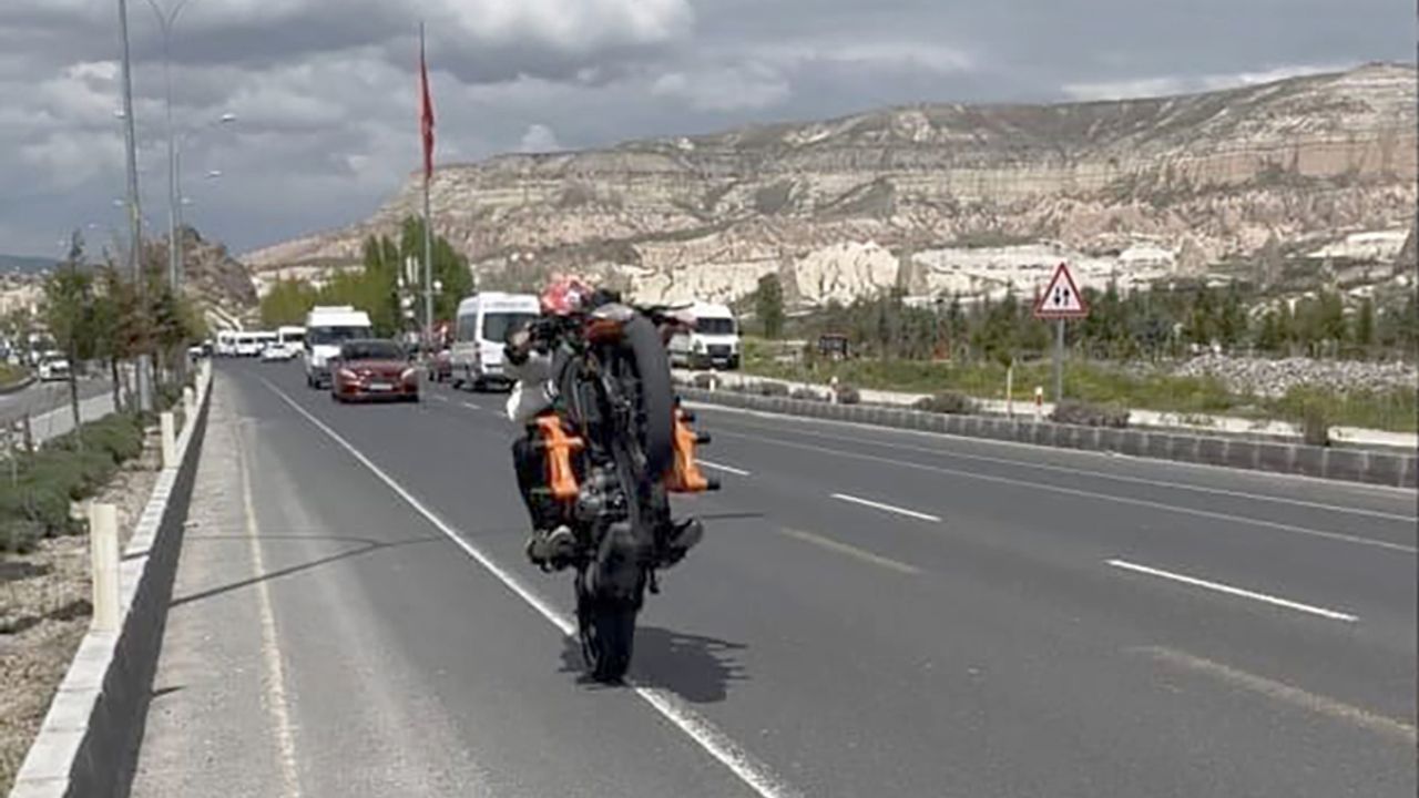 Nevşehir İl Jandarma Komutanlığı Siber Şube Müdürlüğü tarafından yürütülen sanal devriye çalışmaları sırasında, 30 Aralık 2025 tarihinde Merkez İlçe Jandarma Komutanlığı sorumluluk alanında bulunan Güney Çevre Yolu ve Zübeyde Hanım Caddesi üzerinde akrobatik hareketler yapan bir motosiklete ait görüntüler tespit edildi.